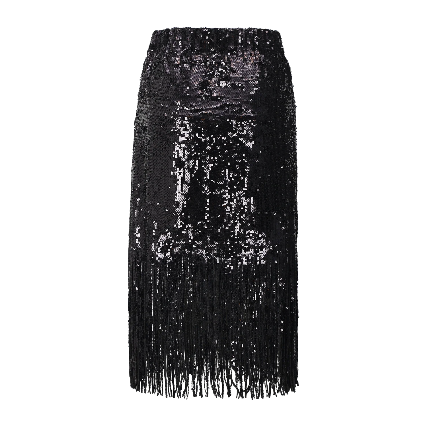 Dixi Skirt fra Urban Pioneers. Dixi Skirt er det ultimate festskjørtet, pyntet med glitrende paljetter og lekre frynser som gir ekstra bevegelse og liv til antrekket. Skjørtet har en behagelig strikk i livet og glidelås på siden for en perfekt passform. Normal i størrelsen.