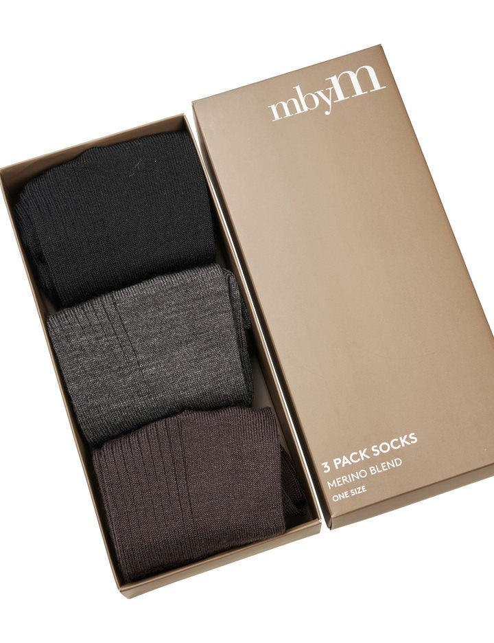 Deilige sokker i en behagelig ullblanding. Sokkene er laget av 70 % akryl og 30 % ull. Pakken inneholder 3-par: brun, sort og grå.