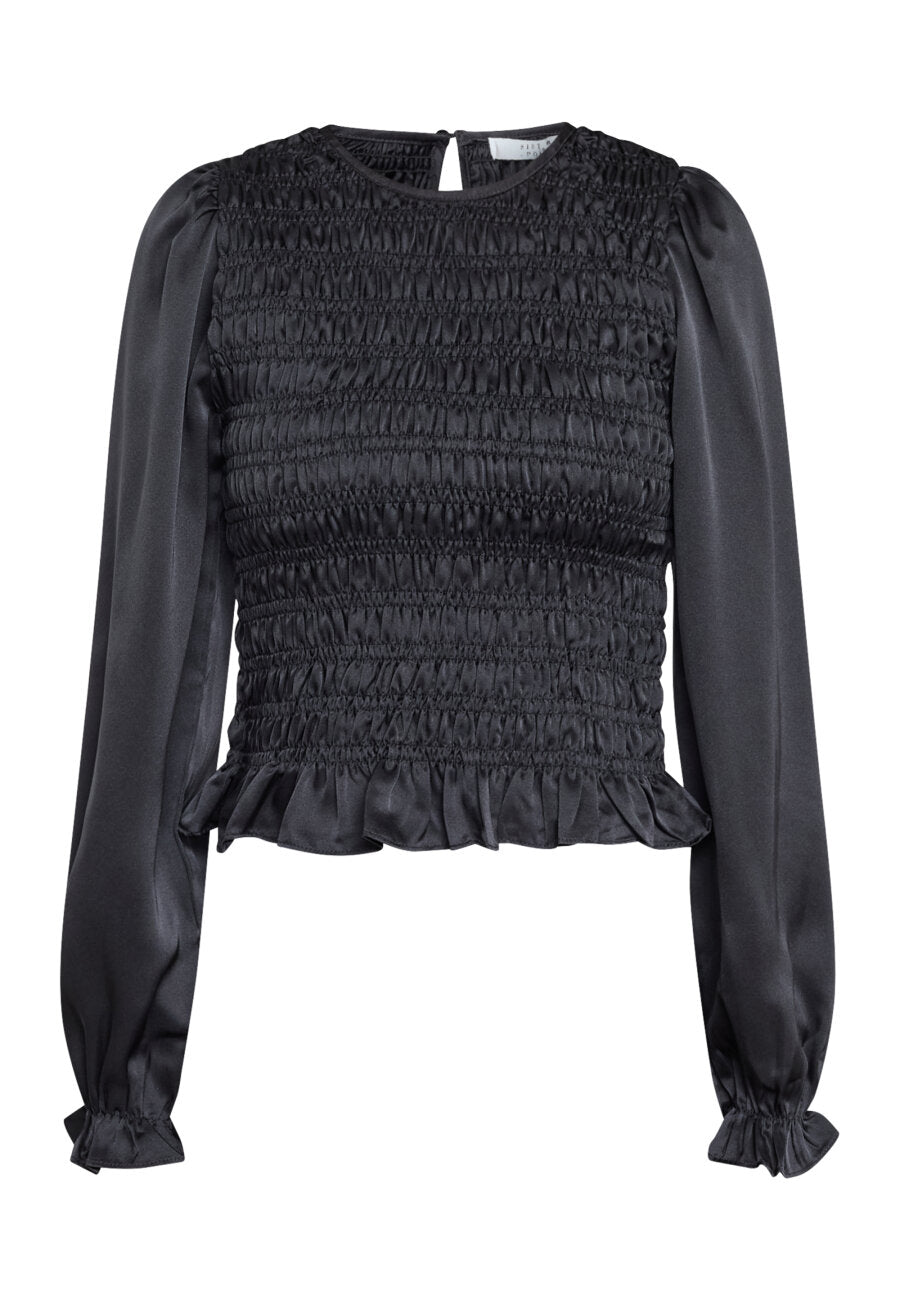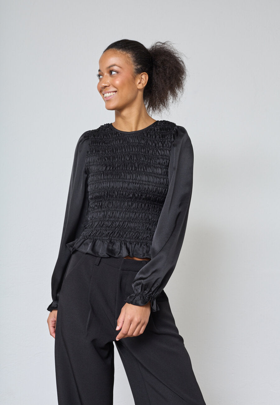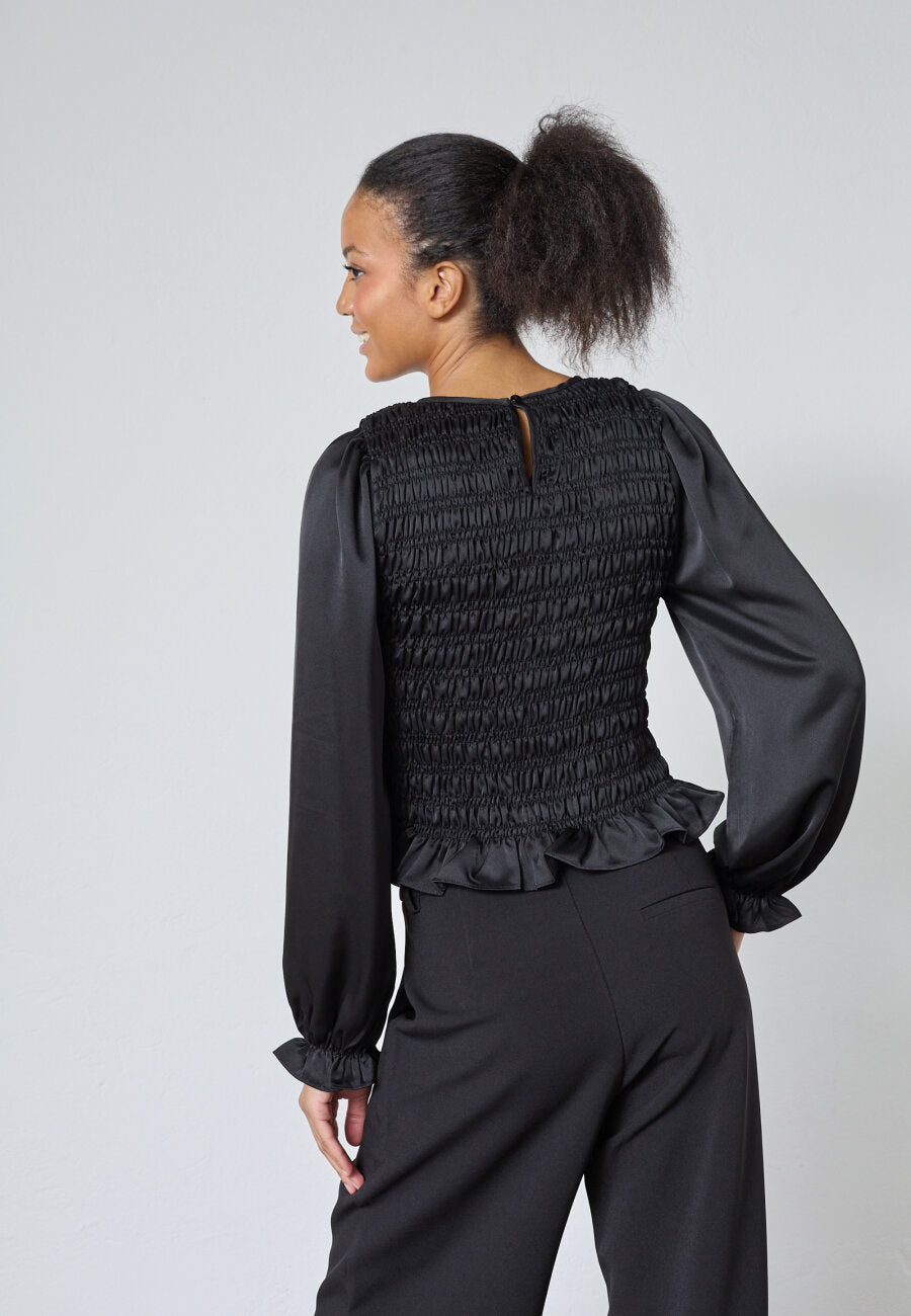 En søt topp med lange ermer og strikk detaljer rundt brystet og ryggen for en flatterende fasong.