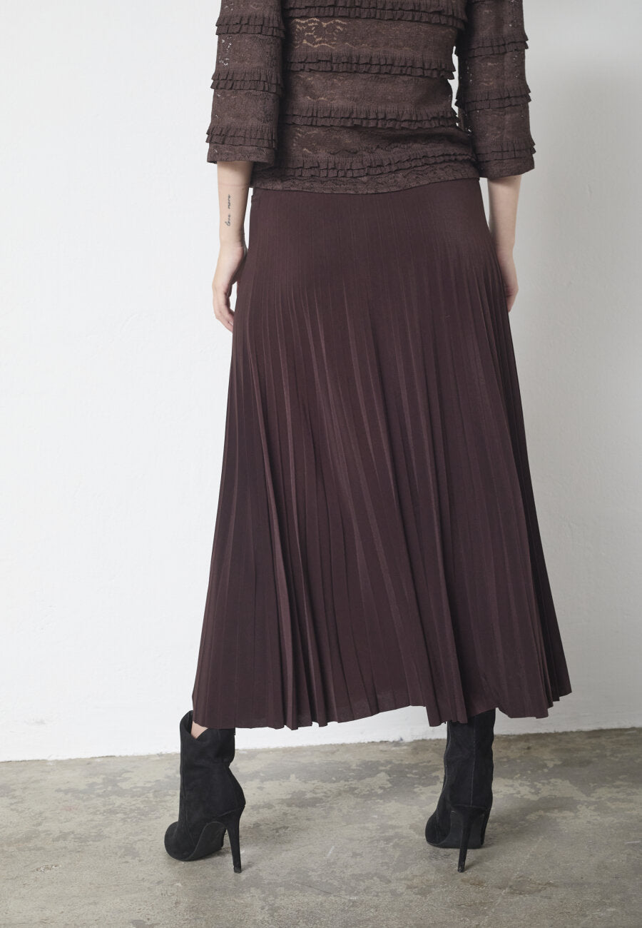 Et fint og lett plisse skjørt som går til leggen.