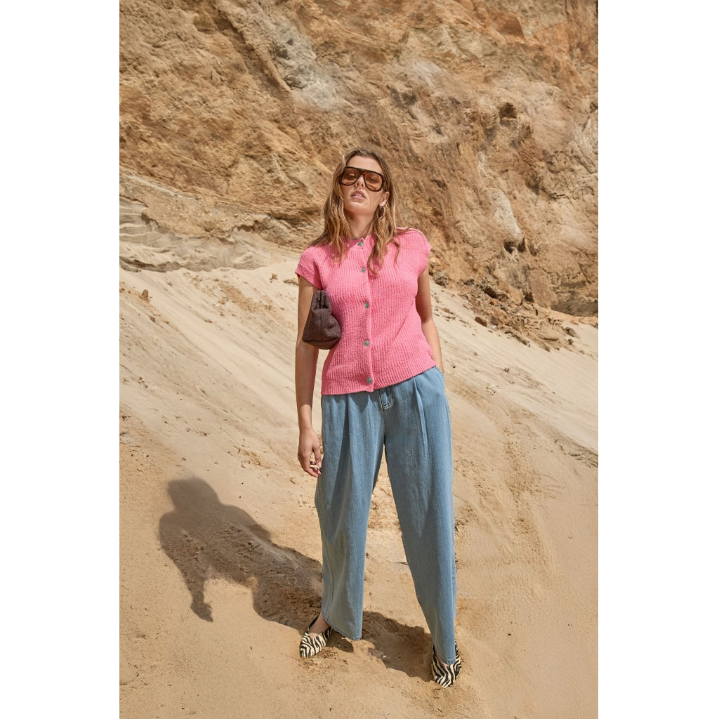 en kjempe fin vest med store dekorative knapper i sølv og i en nydelig rosa farge.