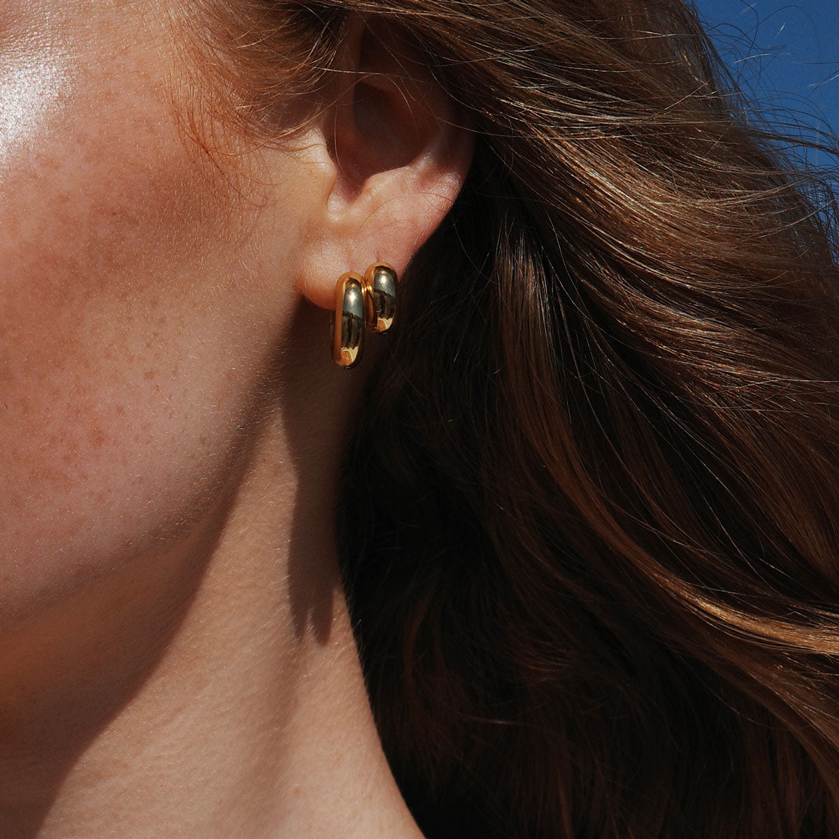 Vi elsker disse små øreringene! De kommer i gullbelagt stål og i stål. Velg mellom 13 mm og 17 mm størrelse. Praktisk click-lås. Våre smykker i stål har en tidløs, clean look og er kjent for å ha svært høy kvalitet.