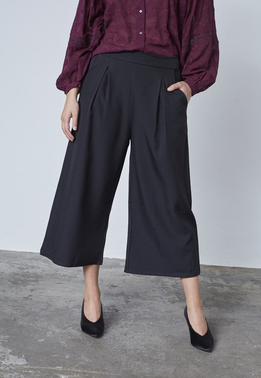GEFA-PA er en vid, cropped bukse med legg i front. Strikk i livet og lommer i sidene.