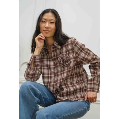 Stilig skjorte i klassisk rutemønster med en dekorativ blomst i samme stoff på venstre bryst. Skjorten har et mykt og behagelig stoff med et flanell-aktig uttrykk som gir en lun og avslappet stil. Perfekt til både hverdags og uformelle anledninger.