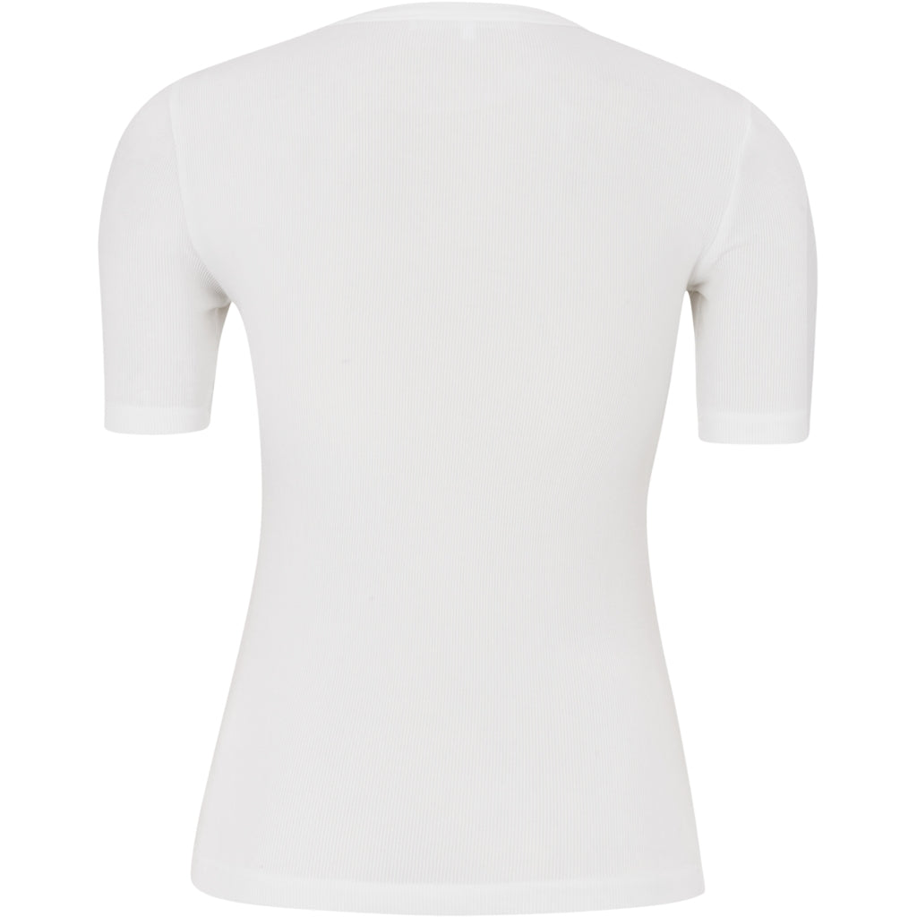 Deilig ribbestrikket basic T-skjorte i hvit. T-skjorten har en rund hals, og en ettersittende passform. Utrolig myk og delikat kvalitet, så deilig å ha på.