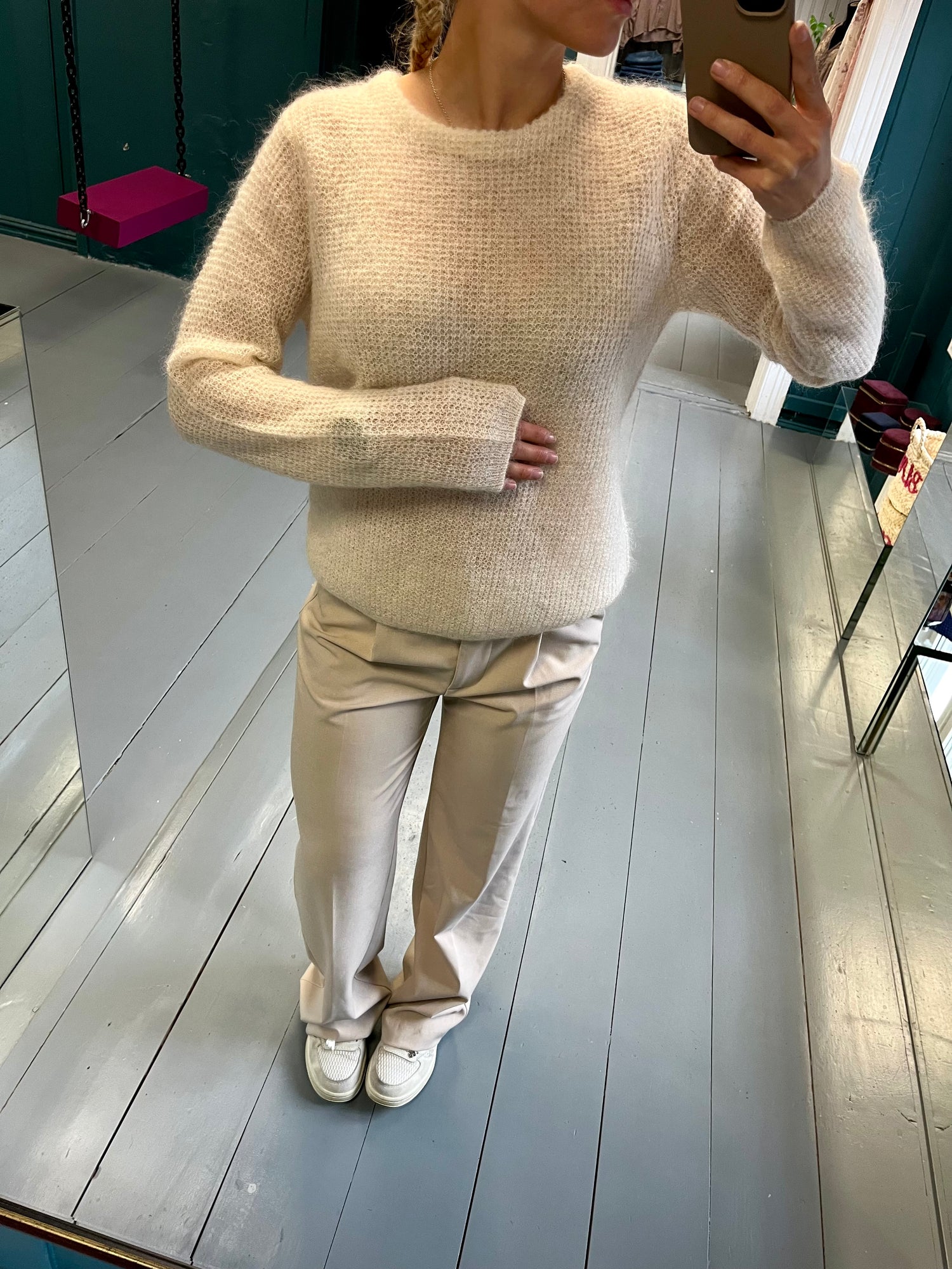 New Maddy er en eksklusiv strikkegenser fra det norske merket Dear Dharma, kjent for tidløst design og dyrevennlig strikk. Genseren er strikket i en luksuriøs blanding av mohair, ull og nylon, som gir en luftig, myk og behagelig følelse – perfekt til bruk hele året.En sikker garderobefavoritt. Finnes i mange farger.