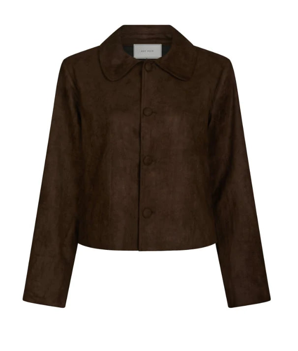 Nilo-jakken er en tidløs favoritt med et moderne preg. Den myke imitert semskede finishen gir et eksklusivt uttrykk, mens den korte passformen gjør den enkel å style både til bukser, skjørt og kjoler. Jakken har klassisk krage, lange ermer og knapper i matchende stoff for et rent og sofistikert utseende. En allsidig jakke du kan bruke fra dag til kveld. Like fin på kontoret, som til helgens middagsplaner.