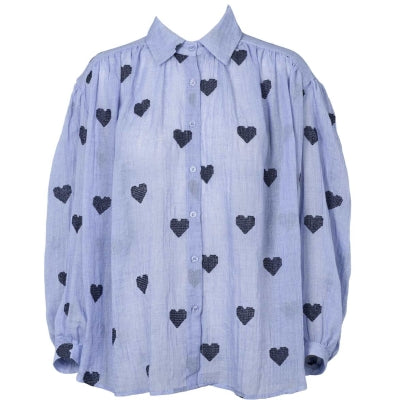 Nydelig bluse med delikate, broderte hjerter som gir et feminint og tidløst uttrykk. Blusen har en klassisk krage og en lett, behagelig passform som gjør den perfekt både til hverdags og finere anledninger. Matcher like godt med jeans som med skjørt for en elegant og avslappet stil.