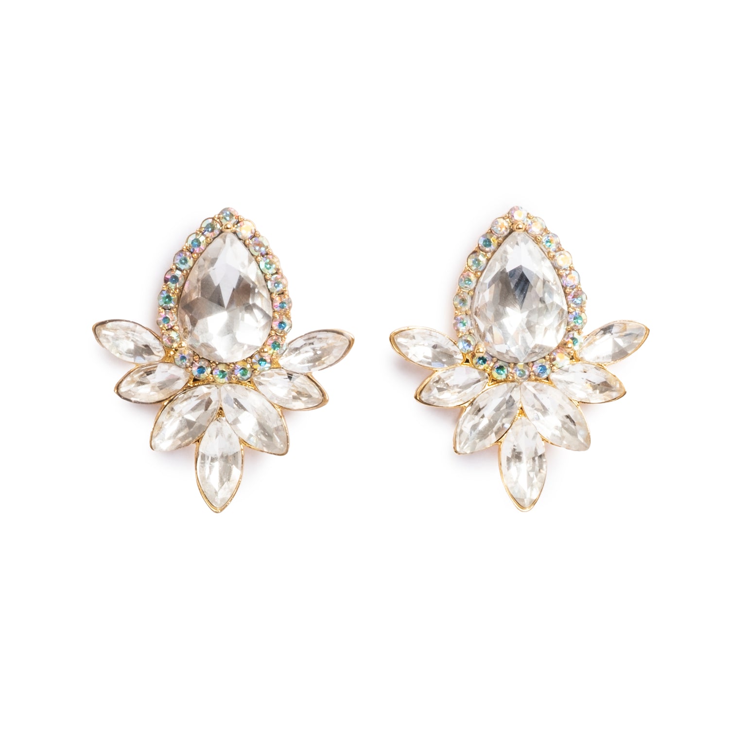 Here I am! Glassteiner i krystall, omkranset av glitrende steiner med AB effekt som skinner i nydelige pastelltoner. Klar for fest! Tone Damli by A&C Oslo, en smykkekolleksjon som oser av femininitet, lekenhet og eleganse. Høy kvalitet, laget i begrenset antall.