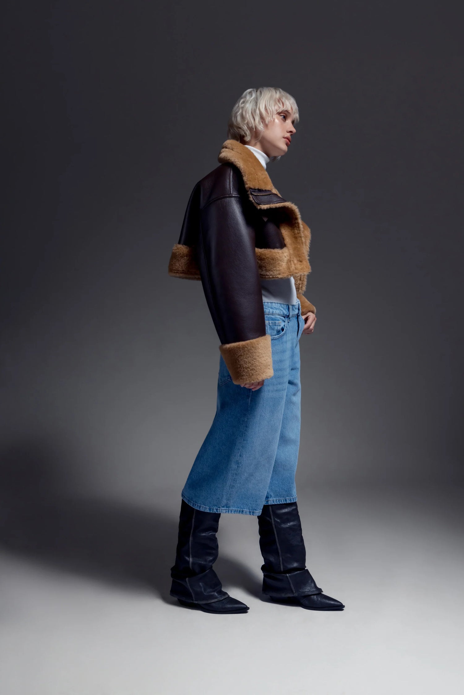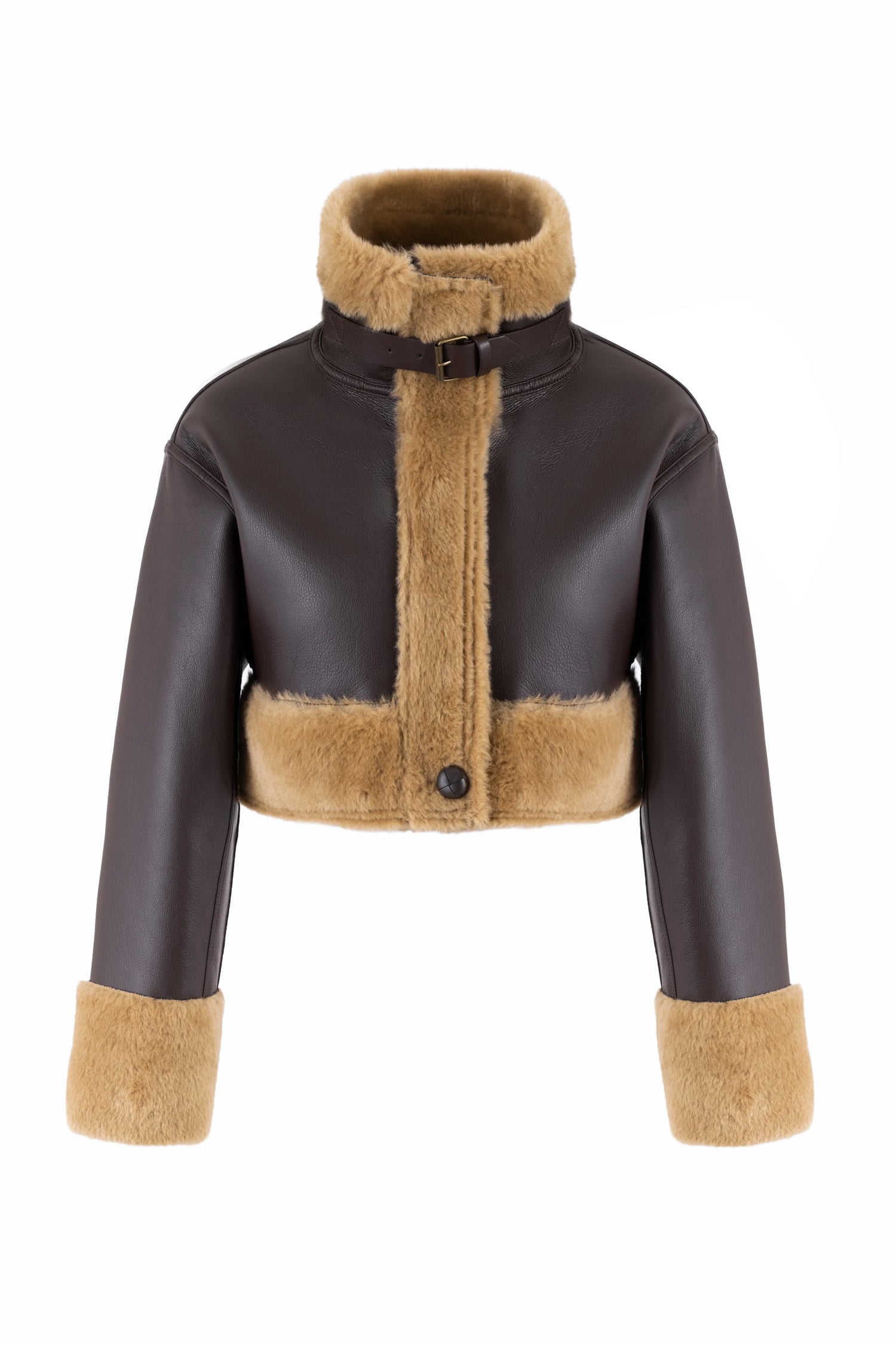 Stilig bikerjakke med myk fuskepels og eksklusive detaljer. Jakken har en justerbar spenne i halsen og store dekorative knapper foran. Den nedre delen kan enkelt tas av for en kortere og mer cropped versjon – perfekt for å variere stilen etter anledning. En moderne og allsidig jakke som kombinerer røff eleganse med komfort.